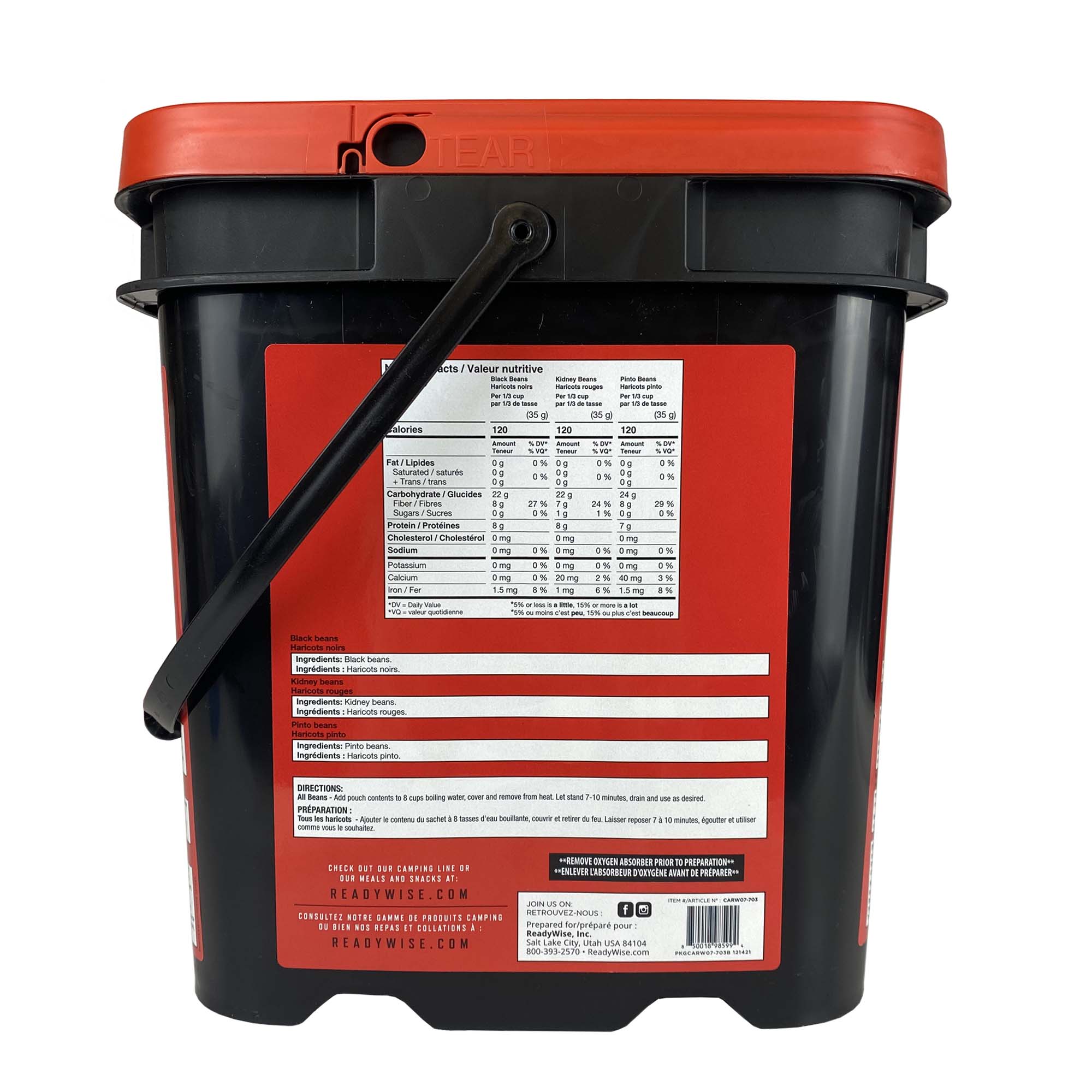 The ReadyWise Emergency Freeze Dried Meats and Beans + Rice, 12 Buckets Combo is a perfect addition to any food supply. Whether you're affected by a snowstorm, hurricane, or other weather emergencies, it's wise to be prepared. These great-tasting freeze-dried and dehydrated foods are ready in minutes when you just add water. They also come in stackable buckets with an easy Grab-N-Go handle, so they're easy to store and transport.
