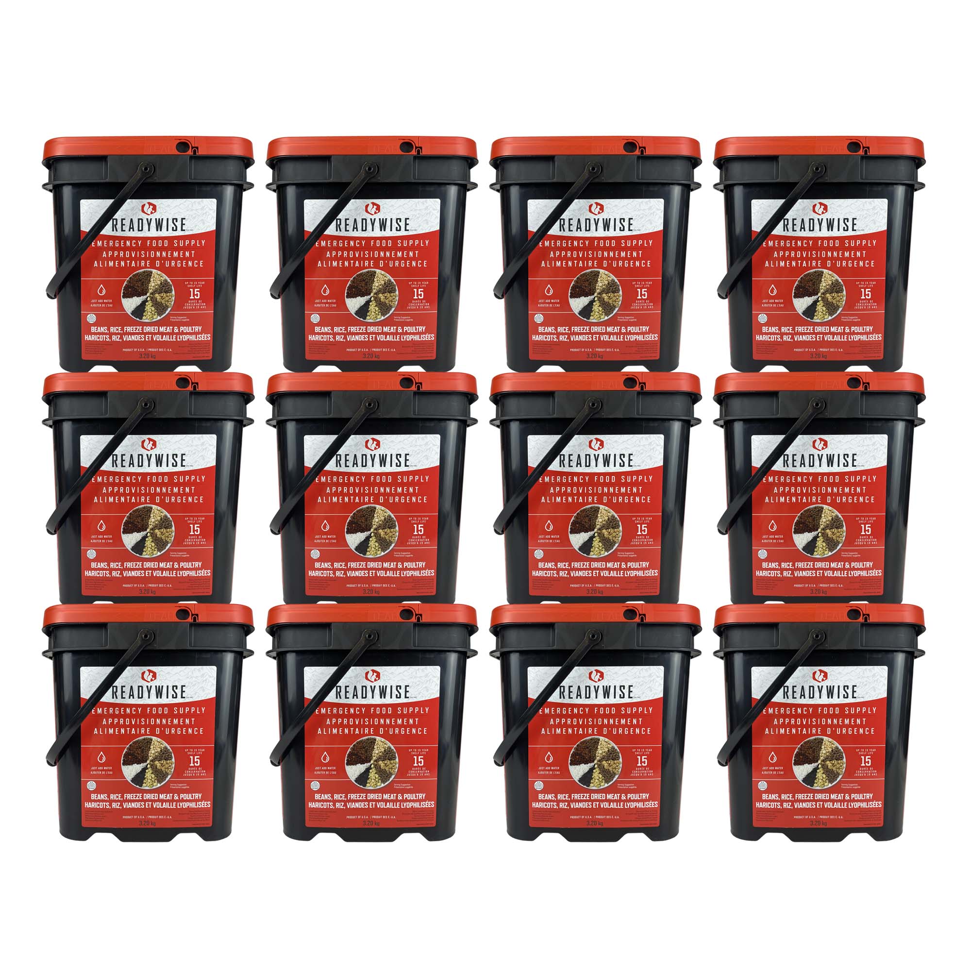 ReadyWise Emergency Freeze Dried Meats and Beans + Rice, 12 Buckets Combo