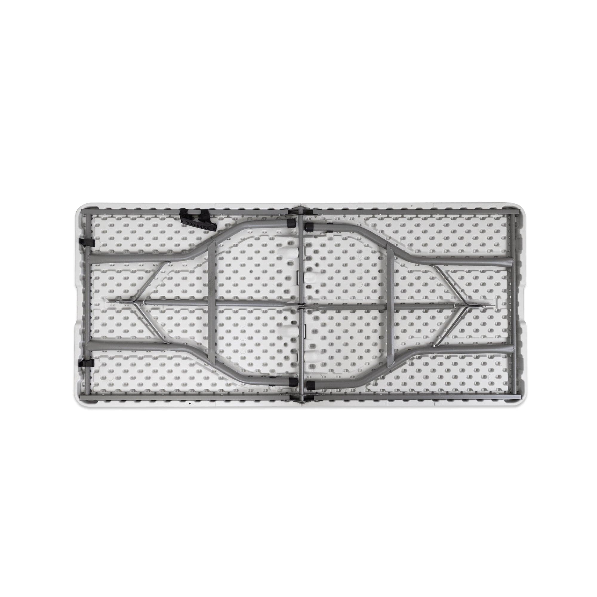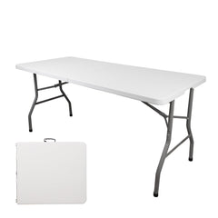 Rectangular Folding Table with Handle (150 x 76 x 75''- Grey). Portable and easy to store, it offers a spacious surface for various activities. Its sturdy construction ensures durability, while the sleek grey finish adds a modern touch. Perfect for indoor and outdoor use.