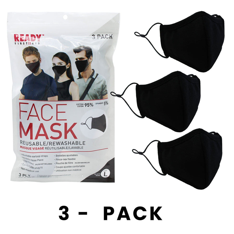 Reusable Face Mask, 3-Layer, Black, V2, Pack of 3 - Ready First Aid