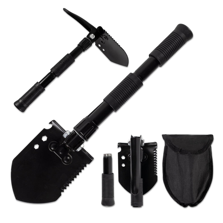 The 72HRS Tactical Black Shovel has a multitude of other features and is not just primarily a shovel. It features an adjustable shovel head that converts it from a shovel to a hoe and a pickaxe as well. Made with carbon steel, it is durable yet lightweight and packs down small into its carrying pouch.