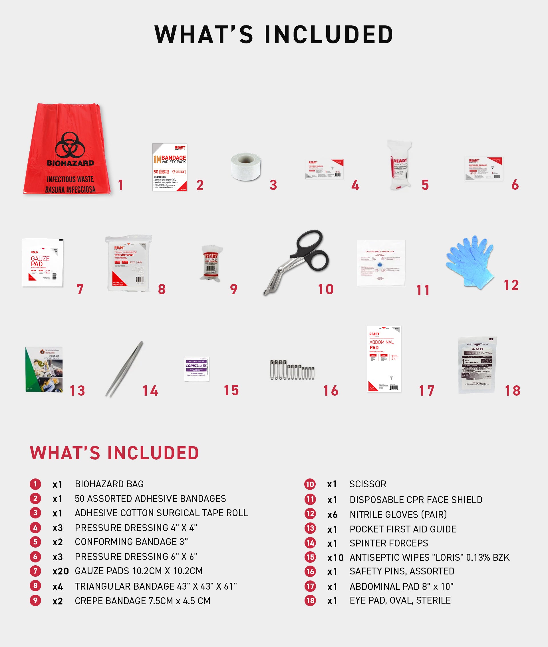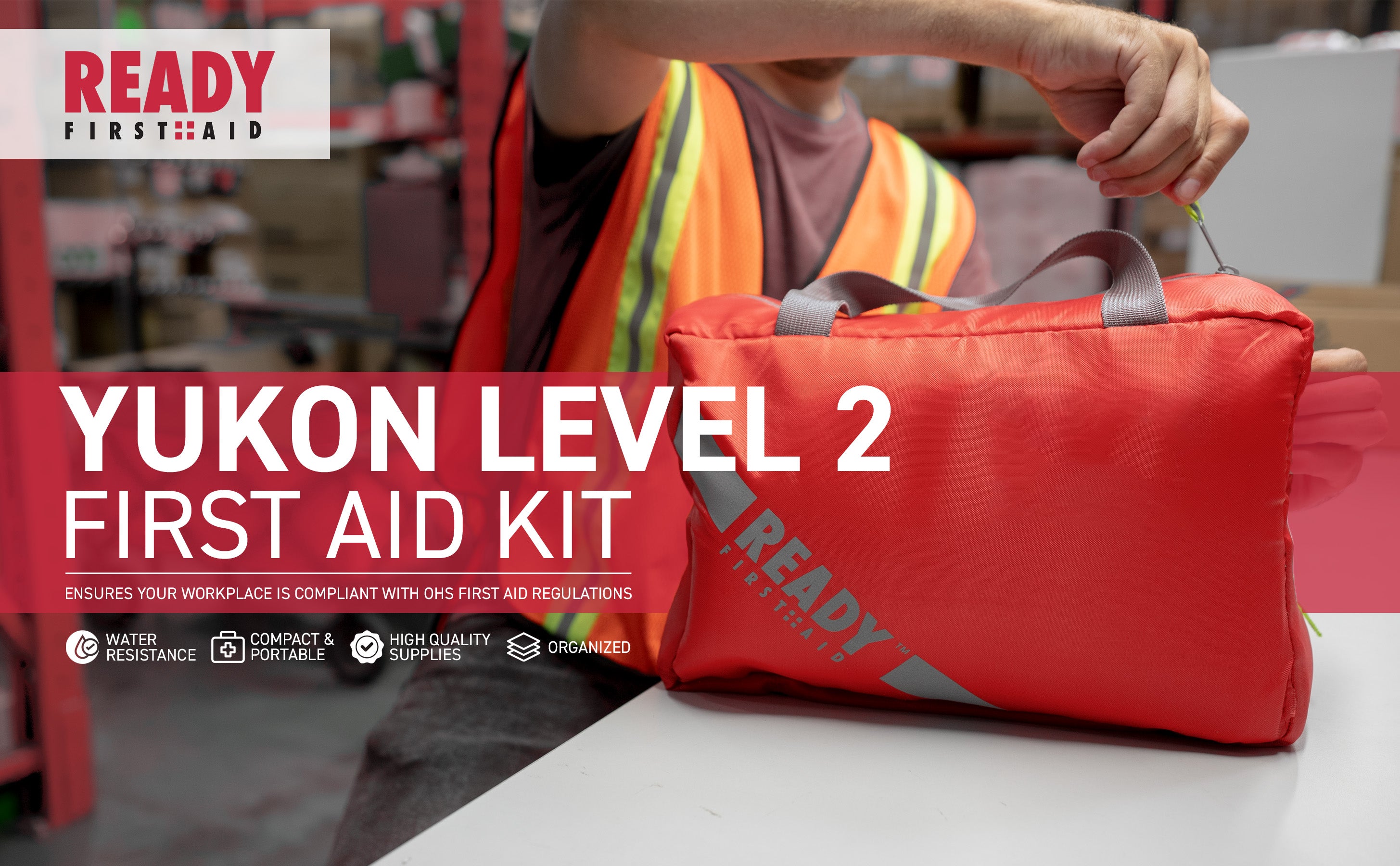 The Ready First Aid Yukon Number 2 First Aid Kit contains all the required components set forth by the Yukon Occupational Health and Safety Regulation. Available in 2 storage options - water-resistant bag, or metal cabinet. The kit is made of high-quality first aid equipment that will aid in treating common workplace injuries.